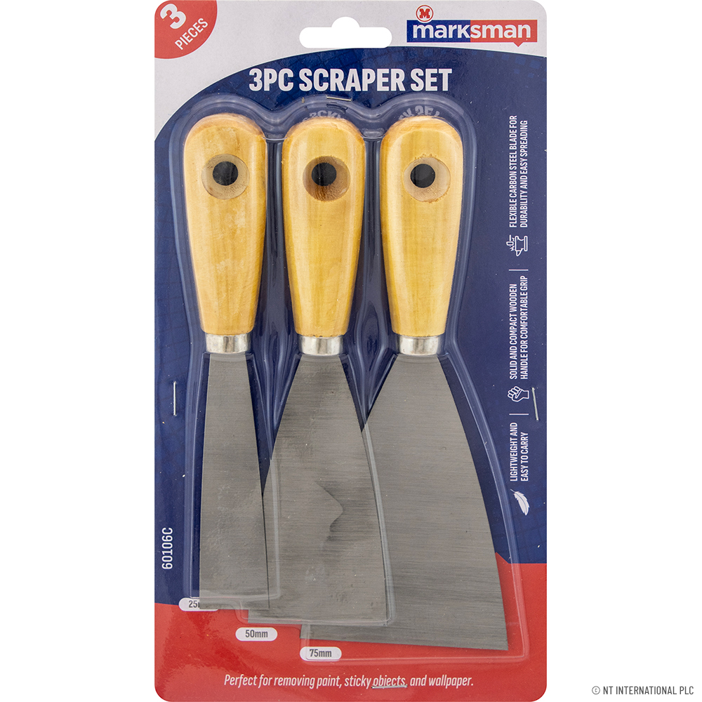3pc Scraper Set Wooden Handle
